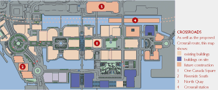Crossrail – the proposed railway line running east-west across the capital – is vital to the expansion plans of Canary Wharf Group. It will increase capacity for the estate’s public transport systems and create access to the Thames Gateway, the area east of the capital that deputy prime minister John Prescott has earmarked for development.Although the government has yet to approve Crossrail, it is likely to do so to kick-start Prescott’s plan. A decision is expected in July. If it goes ahead, the first phase will be due for completion in 2012.