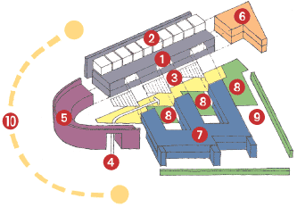 ACAD is an innovative walk-through day hospital that makes a clean break with the labyrinthine layouts of most long-stay hospitals, with their contorted internal corridors and mind-numbing barrages of signs. At ACAD, the patient flow through the building is as direct as in a factory production line and as clearly laid out as in a shopping mall. The facility is currently working at only 60% efficiency because of management difficulties in scheduling doctors' appointments. The building has also proved to be adaptable to constantly changing needs.