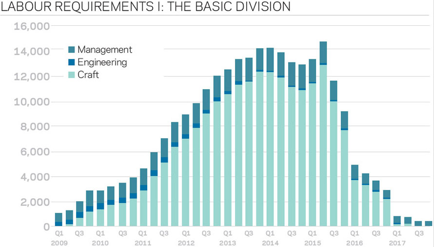 This is pretty handy, given then about 450,000 of the industry’s workers could have lost their jobs by 2010. And the breakdown of the recruitment requirements is especially good news for those working in the craft trades (see the labour requirements II graph).