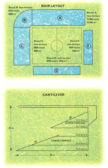 A major source of information is the Sports Council, 16 Upper Woburn Place, London WC1H 0QP, tel. 0171-388 1277. It can provide a comprehensive list of publications on design, safety in football and crowd control. Some were originally produced by the Football Stadia Advisory Design Council, which was set up to implement the recommendations of the Taylor Report but has since been superseded by the Football Stadia Development Committee, an offshoot of the Sports and Recreation Division of the Department of National Heritage. Guide to Safety at Sports Grounds, 1990 (HMSO) - otherwise known as the Green guide Stadia - Design and Development Guide, 1994, by Geraint John and Rod Sheard, the Sports Council. Planning Principles for Sports Grounds Stadia, 1993, International Association for Sport and Leisure Facilities Handbook of Sports and Recreation Building Design (Volume 1 Outdoor Sports) 2nd Edition, 1993, the Sports Council. Technical Recommendations and Requirements for the Construction of New Stadia, 1991, FIFA.Downloads