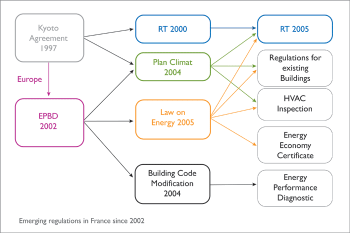 Energy has risen to the top of the political agenda in France, fuelled partly by the weight of public opinion and partly by the European Energy Performance of Buildings Directive of 2002. In the construction sector, voluntary environmental certification has given way to a range of regulatory codes aimed at reducing the country’s greenhouse gas emissions by 75% by 2050 and to provide 21% of electricity from renewable sources by 2010.