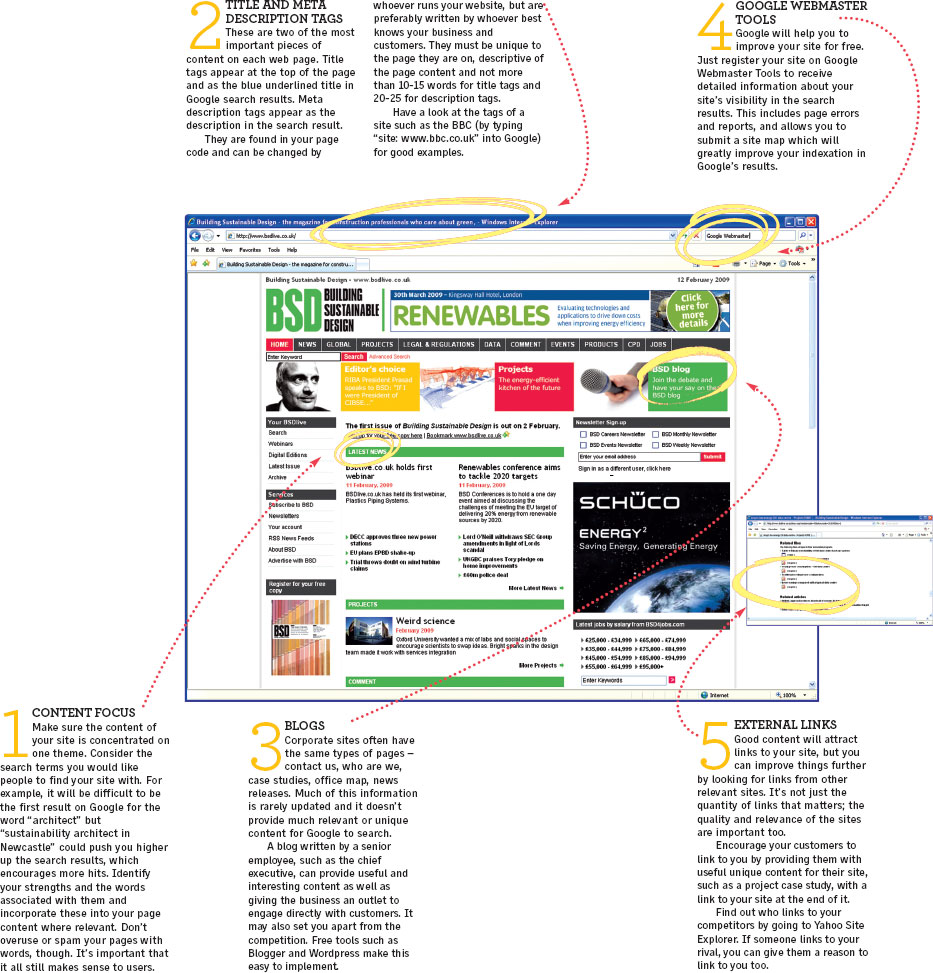 Good content will attract links to your site, but you can improve things further by looking for links from other relevant sites. It’s not just the quantity of links that matters; the quality and relevance of the sites are important too.