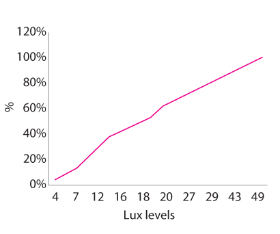 An alternative measure is to identify the value that is sufficient for different percentages of people. The results show that an illuminance level of 10 lux was considered to be adequate by less than 20% of the jury members whereas 50% were satisfied that they had sufficient illumination at 18 lux and 75% at 28 lux.