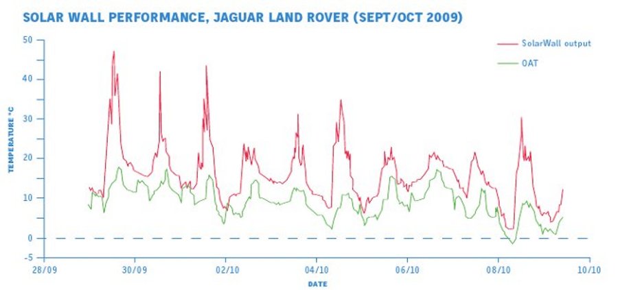 Phillipson has monitored SolarWall’s performance since the building opened last December. He says it is expected to save Jaguar Land Rover 80,000kWh of energy, or 19 tonnes of carbon.