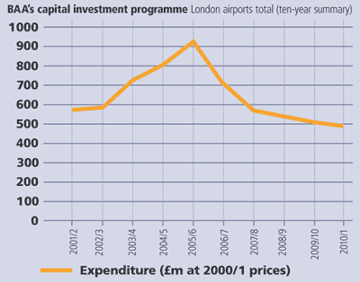 Projects under review include upgrades of facilities at Heathrow, Stansted and Gatwick. BAA planned to spend £6bn on these airports over the next 10 years.