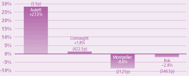 It was also a cheery week for property services group CONNAUGHT. After announcing a rather stonking set of interim results – pre-tax profit was up 25% to £2.1m and turnover rose 37% to £105m – the chaps and chapettes in the City rewarded it with a 1.8% hike in its price to 422.5p.