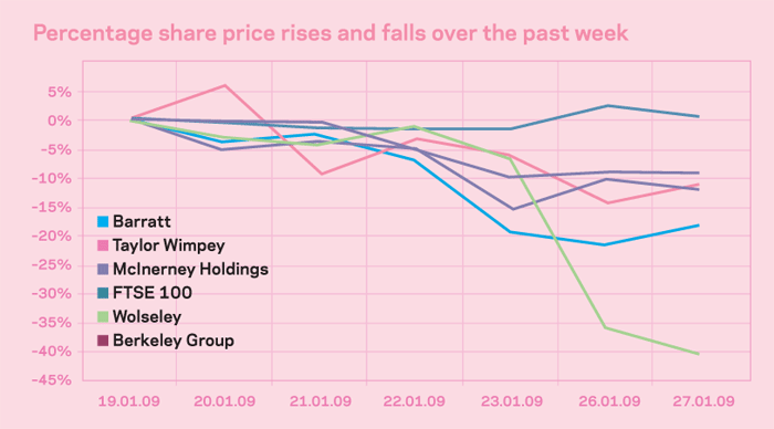 As for the housebuilder, Citigroup analyst Clyde Lewis said it could not count on adding tax repayments from land writedowns to its balance sheet, thus endangering its banking covenants. That was enough to send the share price down 12% on a Friday of thin trading. It hadn’t recovered by Wednesday this week.