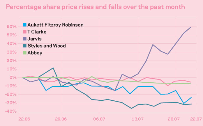 Percentage share price rises and falls over the past month