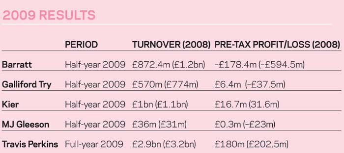 Hybrid housebuilder and construction firm Galliford Try posted a pre-tax profit of £6.4m, a turnaround compared to a £37.5m loss in the same period of 2008. The group’s success owes much to it taking advantage of low land prices and increasing its landbank, financed by a £119m rights issue.