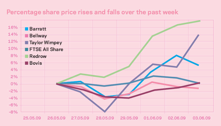 There were two pieces of good news for housebuilders this week; the Nationwide building society said house prices rose 1.2% in May and there was some encouraging purchasing data