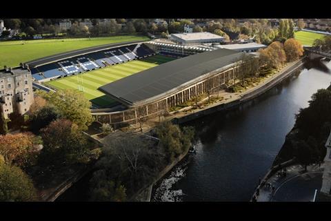 The scheme for Bath Rugby would see the site’s existing clubhouse demolished and replaced by a new 18,000-seat stadium which would retain the existing south stand while building new north, east and west stands.