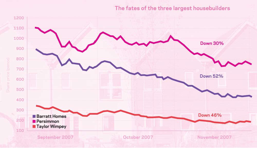 Leslie Kent, a director at broker JM Finn, said: “It’s not Armageddon, but the sector will need time to adjust to tighter credit. There’s been a serious change in the market and how housebuilders fare in the crucial first quarter will determine if the current decline is a permanent factor. For contractors it’s slightly different – in some respects they have held up quite well.”