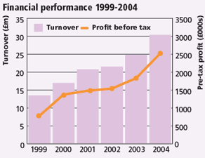 The firm’s turnover has grown steadily in the past two years. Results posted last month show sales of £30m for the year to 31 March 2004, up from £25m in 2003. Pre-tax profit mirrored this, up to £2.7m in 2004 compared with £1.9m in 2003.