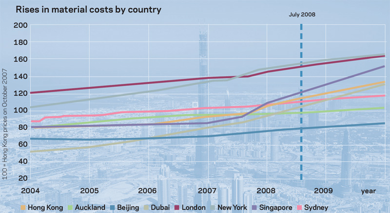 The inflation rate in Dubai was second only to tender price rises in Singapore, where the total demand for construction services was last year at an all-time high of S$24.5bn (£9.7bn). This rate has also been pushed up by volatile commodity prices, as well as a lack of capacity among contractors.