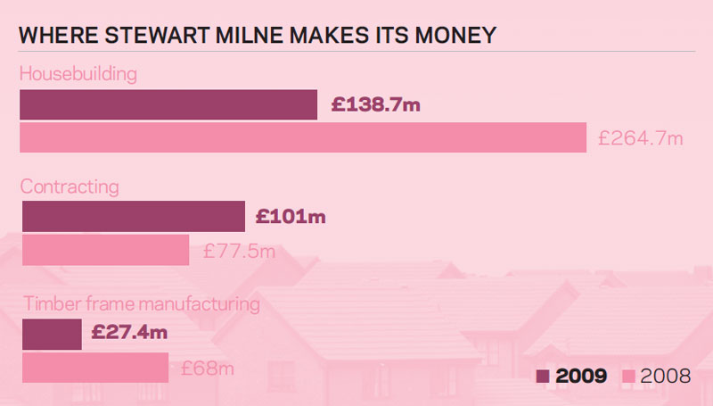 Meanwhile, the housebuilder’s profit of £25m became a £27m loss in the year to 30 June 2009. This was the result of restructuring costs of £5m and land writedowns of £19m, which came on top of a pre-exceptional loss of £2m.