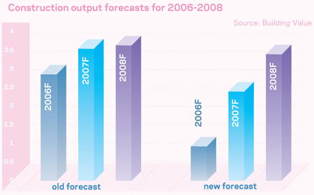 The firm has revised its predictions for construction output from this year to 2008, after a weaker than expected performance by the repair and maintenance sector.