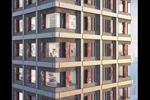 The marble fins had been proposed in response to the DRP’s suggestion to link the tower to the scheme’s proposed red-coloured office building, but were removed after planning officers deemed them incongruous and unnecessary.