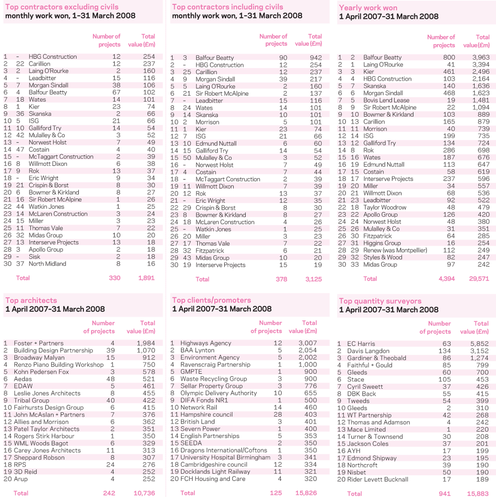 For more industry rankings click on the league tables link at www.building.co.uk