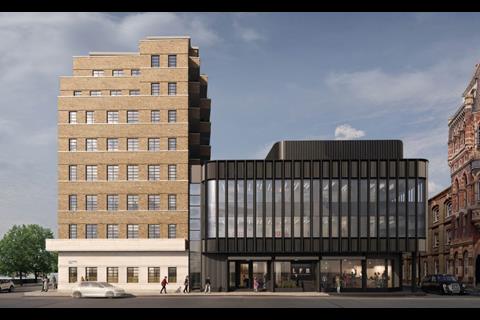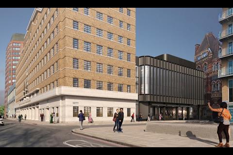 Designed by architect 5plus, the refurbishment replaces a much larger set of proposals by Pilbrow & Partners which would have included two residential towers of 26 and 24 storeys on two sites to the rear of the building.
