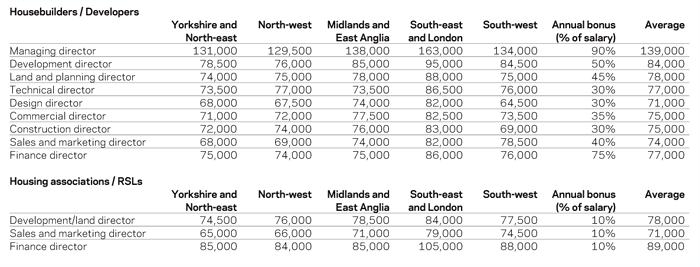 This year’s survey of salaries in the housing sector comes with a warning. On the face of it, the results are encouraging, as basic pay and bonuses appear to be increasing rapidly. Salaries are up 4% on average – more in certain sectors. For example, land and planning directors in the Midlands are now paid 11% more than last year, and bonuses are often as much as 50% for development and land directors, compared with 40% or less last year.