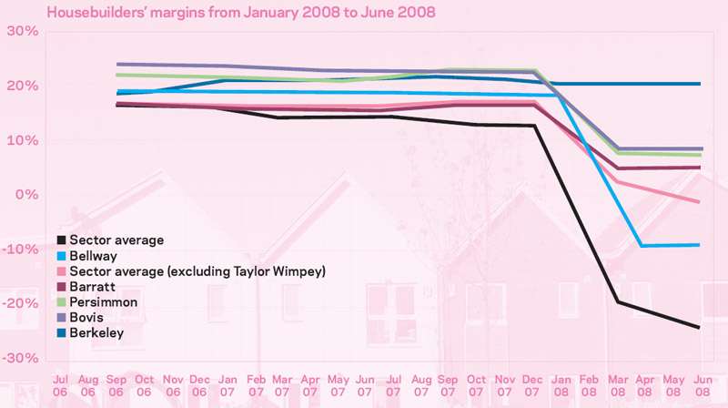 The falls, which are the result of land and goodwill writedowns, produced an average operating loss of -26% across the sector in the first six months of 2008.
