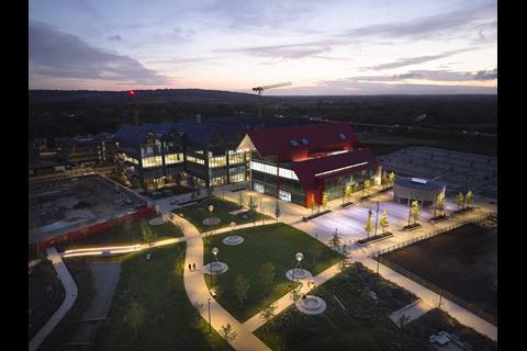 The development’s recently completed Phase 1A comprises two purpose-built laboratory buildings with units from 2,000 sq ft up to 56,000 sq ft, including 13,500 sq ft that is being fitted out and will be available in December, as well as The Red Hall, totalling 33,000 sq ft of workspace over four floors. Main contractor was Laing O’Rourke.