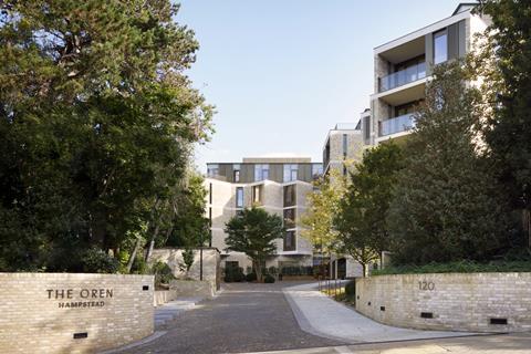 Called the Oren, the scheme has been built on the edge of Hampstead Heath in London at a site bordering Golders Hill Park.