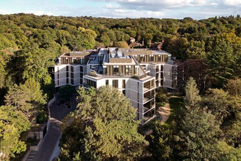 It was completed by Hampshire contractor Kingscote for Elysian Residencies and includes four distinct but connected elements that follow the natural contours of the site.