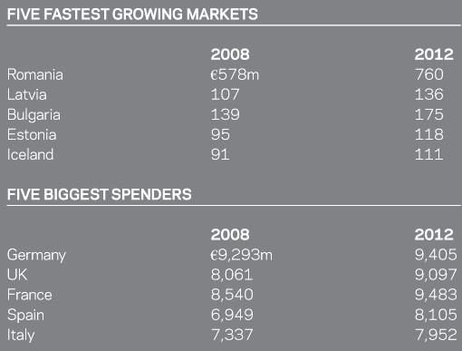 The 7% growth rate would make, for example, Romania’s spend in the area €760m (£604m) in 2012, compared with €578m in 2008, and Bulgaria €175m, compared with €139m at present.