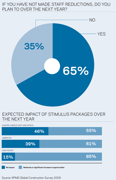 KPMG has warned that the global construction industry may be unrealistically upbeat about its future prospects. The warning came after the firm’s annual survey of construction firms worldwide found that 64% expected to increase or maintain profit by mid 2010. The research also found that 65% expected to make no redundancies over the next 12 months.