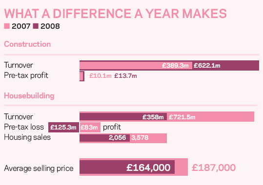 In the year to 31 December 2008, the company plunged to a £170m loss after total writedowns of £136m in its housing and property divisions.