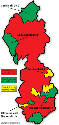 Fears are growing among planning experts and housebuilders in the North-west that a freeze on the construction of large private homes will be extended by local authorities as they attempt to meet restrictive targets set by the regional assembly.