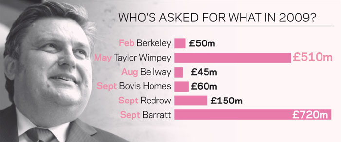 Farley has been tight-lipped about whether, and why, Persimmon would do a rights issue, despite coming under increased pressure in the City in recent weeks as the only listed volume housebuilder not to have gone to shareholders for cash (see table, below).