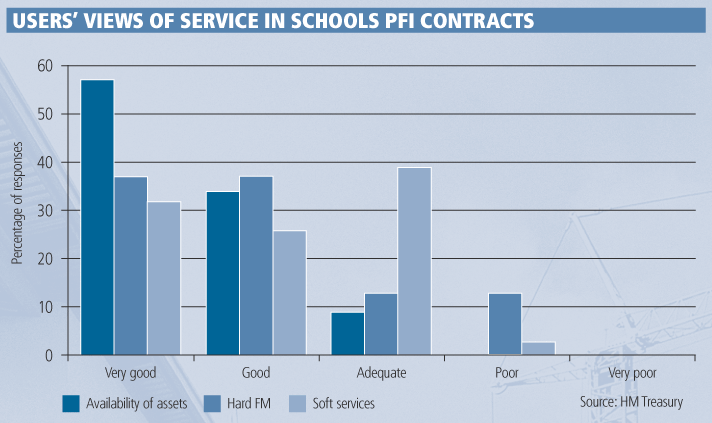 What this means So-called "soft services", such as cleaning and catering, are fundamental to the PFI model. However, Treasury-commissioned research on schools (see chart, left) showed that although most public authorities rated construction and maintenance under PFI highly, most described the quality of soft services as merely "adequate". This is hardly a disastrous result, but it does suggest that there is no great advantage to using the PFI to clean toilets and cook lunch. So, if it is felt that there is no great gain in value for money, soft services will not be provided by the private sector consortium.