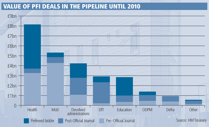 However, reports of its demise were premature. Earlier this month, Bart's was finally approved by the Department of Health and the Treasury, although contractor Skanska's annual payments were cut by £20m. And last week, chancellor Gordon Brown confirmed the government's commitment to the procurement method by publishing a document, entitled PFI: Strengthening Long-Term Partnerships, alongside his Budget announcement. This stated that the government was still committed to building the 200 PFI projects that are in the pipeline, which are worth a total of £26bn (see chart, overleaf). Adrian Ewer, the finance director of PFI investor Laing, explained what this meant: "Those that have been knocking the PFI, particularly the media, will now recognise that it remains a key plank of government policy."