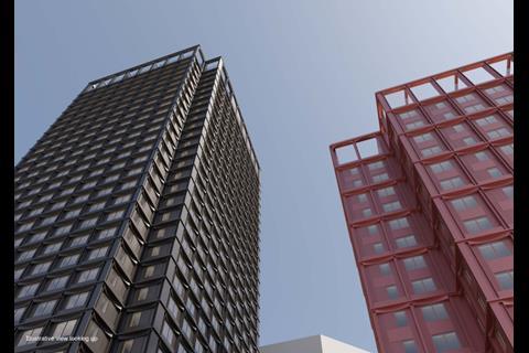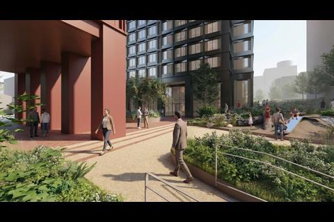 The higher of the two TP Bennett-designed towers would be the tallest on the masterplan site with the two buildings set to contain a mix of studio, one-, two- and three-bed build-to-rent apartments.