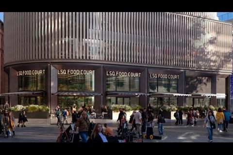 The building would also include a large food court on the ground floor, a rooftop restaurant with views over the square, new shop fronts on Bear Street and Cranbourn Street and a four-storey-tall rotating LED screen facing the square.
