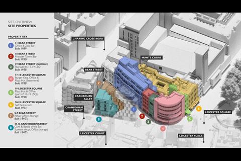 The scheme’s developer Soho Estates, which started acquiring the site’s buildings in the 1990s including the Burger King located at the corner of the square and Bear Street, said it wanted to “transform this corner of Leicester Square, unlocking its full potential and establishing it as a destination that plays an active role in the life of the Square”.
