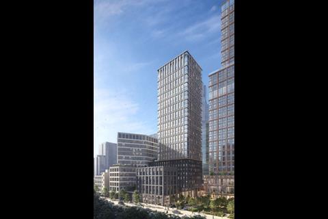 The revisions aim to bring consented proposals for a 32-storey tower on the site up to date with building safety requirements for two stair cores in residential buildings taller than 18m which came into force in April last year.