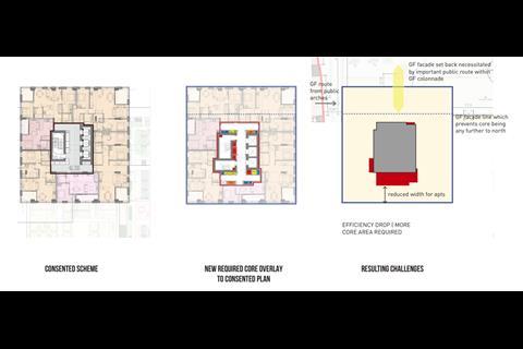 PLP said increasing the height of the building was the only feasible option to accommodate the increased size of the core due to site constraints.