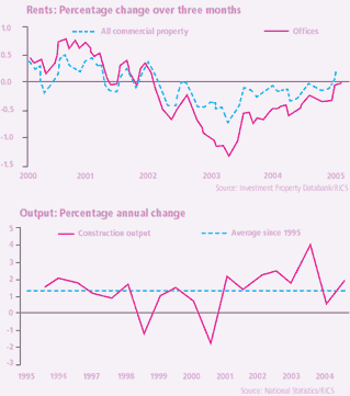 Rental growth rose 2.2% in February, with the biggest growth recorded in the retail sector. In the office sector – the sub-set of the commercial sector that has been worst hit by the economic downturn – rents in the quarter to February 2005 flattened out for the first time since January 2002.