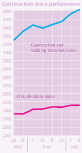 In the immediate period after the Olympic decision, construction shares were widely expected to rise in response to a guaranteed and large-scale workload for many in the medium term. However, shares in the sector overall fell 1% to 3637, not least because of profit warnings and downbeat trading statements from firms such as Mowlem, Wimpey, Travis Perkins and Gleeson.