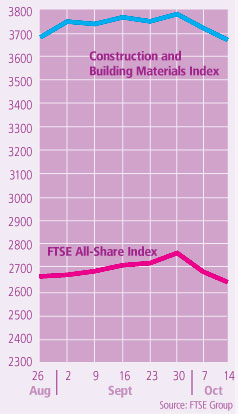 Other contractors fared less well. The week before last Balfour Beatty’s shares held steady after the news that it had been fined £10m for its role in the 2000 Hatfield rail crash, but last week it did not escape the downbeat mood of the market and fell almost 4% to 301p.