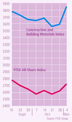 Overall, the Construction and Building Materials Index had one of its strongest weeks in 2005, up 7% to 3856. It outperformed the All-Share, which rose 4% to 2721.