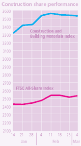 The rest of the sector was relatively uneventful, although highlights included Gleeson, up 7% to 289.5p. Overall the construction sector remained at roughly the same level, dropping only slightly (0.4%) to 3534, as the All-Share rose slightly (0.6%) to 2527.