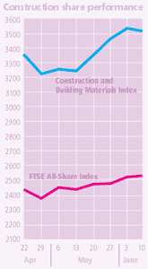 The sunny spell enjoyed by the quoted construction sector over the past two months came to an end last week. Shares in the construction sector dropped almost 1% to 3511, which, though not a major downpour, was in contrast with the balmy weather of recent weeks.