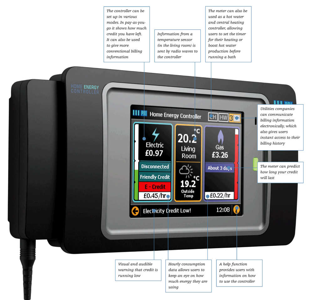 At the most basic level, smart meters are simply a way for utility companies to get more frequent and accurate meter readings without having to enter customers’ homes. The more advanced have in-home displays so that consumers can see their energy use and two-way communication between energy supplier and customer becomes possible. For example, the meters allow suppliers to switch customers between pre-pay and credit payment remotely and users can switch between tariffs.