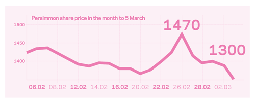 Persimmon share price in the month to 5 March