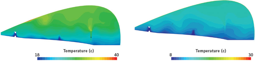 Computational fluid dynamic (CFD) modelling showed that as the air inside picked up heat, it would collect near the top of the mountain, making it too warm for the plants to survive. “We had to do an amazing amount of air modelling to ensure the correct air distribution within the space,” Davey says.