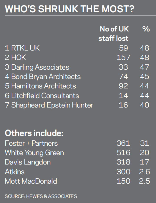 Architect RTKL has shed the highest proportion of its British workforce, axing 59 people to reduce it by 48% in the period.